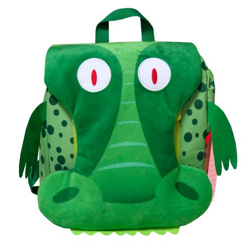 Fantastyczny plecak w oryginalnym kształcie Krokodyla. Bardzo trwały na codzienne użytkowanie, pojemny i wielofunkcyjny. Wyposażony w jedną komorę zapinaną na podwójny zamek błyskawiczny i klapę na rzepę formie dzioba krokodyla. Przód plecaka pod klapą ma ukrytą zamykaną na zatrzask kieszonkę, bok urozmaicony jest o siateczkowy schowek na napój czy bidon. Tył i przód plecaka są usztywniane. Regulowane i szerokie ramiona ułatwią użytkowanie, a górny uchwyt pozwala wygodnie przenosić plecak. Niewiarygodnie efektowny, zaprojektowany w formie 3D prezentuje się doskonale.