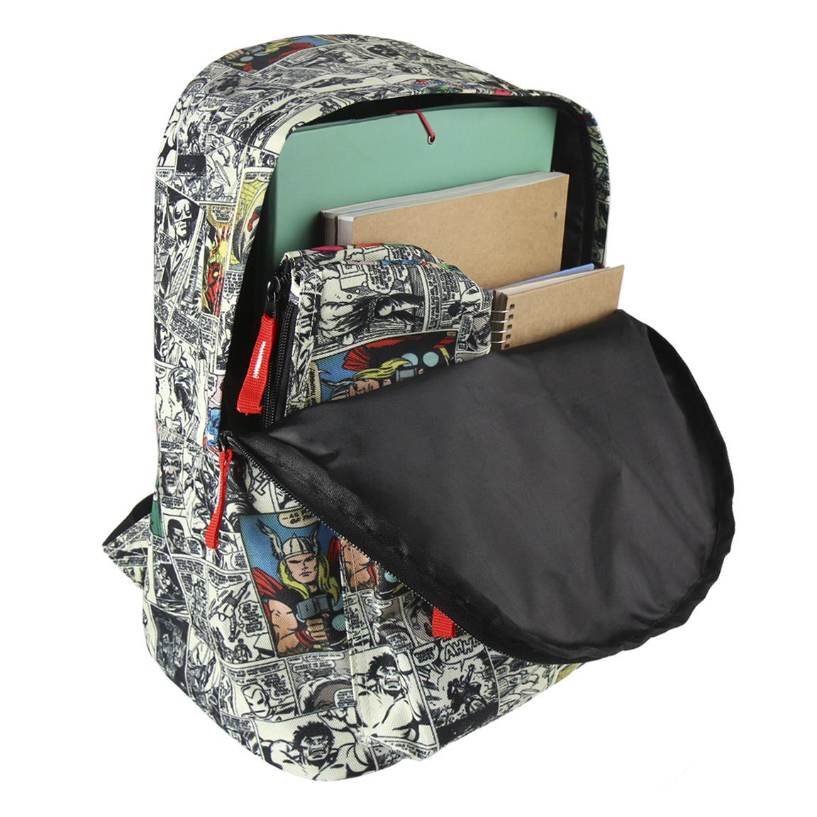 Rewelacyjny plecak stworzony z licencją Marvel. Wykonany z wysokiej jakości materiału, będzie odporny na codzienne użytkowanie. Wyposażony został w duża komorę na suwak oraz w pojemną przednią kieszeń zamykaną na zamek błyskawiczny. Tył plecaka jest usztywniony, a ramiona szerokie z możliwością regulacji, górny uchwyt zrobiony w formie rączki z pewnością ułatwi przenoszenie i przechowywanie.