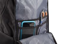 Plecak podzielono na dwie komory główne. Jedną z nich wyposażono w wyściełaną i miękką przegrodę na laptopa o przekątnej do 15.6” zapinaną na rzep, dzięki czemu Twój sprzęt będzie bezpieczny podczas podróży. W komorze tej zmieszczą się dodatkowo akcesoria komputerowe, książki, czy dokumenty. W przedniej części plecaka znajdziemy jeszcze jedną mniejszą komorę z organizerem, dzięki któremu przybory biurowe, wizytówki czy portfel będą zawsze na swoim miejscu. Wygodna i praktyczna pionowa przednia kieszeń przeznaczona jest do przechowywania najczęściej używanych przedmiotów, np. kluczy lub telefonu.