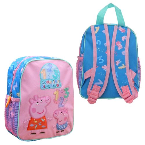 Rewelacyjny dziecięcy plecak stworzony na licencji Świnka Peppa. Wyposażony w pojemną komorę zamykaną na zamek błyskawiczny i dwie siateczkowe kieszonki po bokach na napój, szerokie i regulowane ramiona oraz górny uchwyt do wygodnego przenoszenia. Całość z wzorem z popularnej bajki, doskonale sprawdzi się do przedszkola i do szkoły.