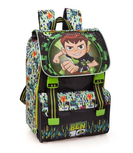 Wielofunkcyjny, duży plecak/tornister w bardzo modny wzór Ben 10. Wyposażony w jedna pojemna komorę z przegrodą, zamykany na ściągające sznurki oraz klapę z zatrzaskami. Główną komorę można powiększyć poprzez odpinanie bocznych zameczków. Klapa przednia wyposażona jest w kieszonkę zabezpieczoną zamkiem. Z przodu plecaka umieszczona jest dodatkowa pojemna kieszeń zapinana na zamek. Regulowane ramiona są wykonane z szerokiego, miękkiego materiału zapewniającego komfort w noszeniu. Tył jest dodatkowo usztywniany i wyprofilowany idealnie dopasuje się do pleców. Górny uchwyt ułatwi przenoszenie i przechowywanie plecaka.
