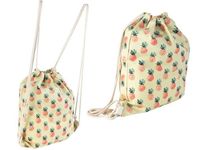 Worek został uszyty z miękkiego i miłego w dotyku materiału, jakim jest płótno bawełniane. Zastosowany materiał ma optymalną grubość, dzięki czemu produkt jest wytrzymały, co przekłada się na trwałość i długość jego użytkowania. Plecak posiada przyjemny dla oka, beżowy odcień, który z soczystą, owocową aplikacją rozmieszczoną na całej powierzchni daje bardzo interesujący efekt. Letni, apetyczny motyw dodaje świeżości i wzbudza pozytywne odczucia.