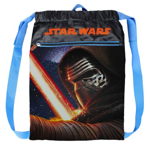 Plecak - worek Star Wars. Wykonany z wysokiej jakości materiału, bardzo funkcjonalny. Wyposażony w przednią kieszeń zamykaną na zamek i dużą komorę główną zaciąganą na odpinany pasek, który pełni również funkcję ramion. Plecak posiada górny uchwyt w formie rączki ułatwiający przenoszenie i przechowywanie.