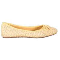 Plecione baleriny w kolorze żółtym to idealna propozycja na lato. Buty mają oryginalny krój i kolorystykę, są lekkie, wygodne, świetnie pasują i na co dzień, do szortów, i na szczególną okazję, do zwiewnej, romantycznej sukienki. Są bardzo kobiece, eleganckie, ładnie wykonane, wyposażone w mocną, elastyczną podeszwę i miękką wkładkę.