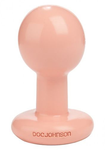 A more well-rounded butt plug, this 3.5'' Round Plug has a uniform spherical head that stretches you out effectively, fills you up fully, and hits all of your sweet spots. The small size is petite and manageable and perfect for beginners while the body is tapered with a wide safety base. Made from our antibacterial Sil-A-Gel formula and surrounded by slick PVC, this plug is firm yet flexible.