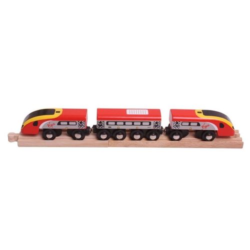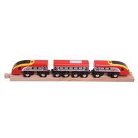 Pociąg składa się z dwóch lokomotyw i jendego wagonu podróżnego. Jest to wysokiej jakości zestaw, który jest idealny do rozpoczęcia zabawy z drewnianymi kolejkami.
