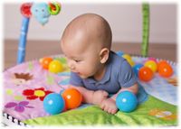 Dzieci w pierwszych miesiącach życia odkrywają świat przede wszystkim za pomocą wzroku i dotyku. Grzechotki, gryzaki i inne zabawki zachęcają malucha, aby po nie sięgać.
