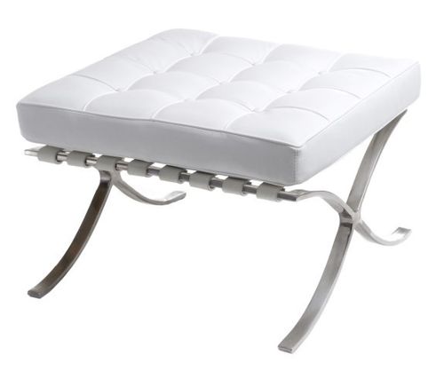 Jest to zaprojektowany w 1929 roku podnóżek, który powstał na zamówienie, i stanął w niemieckim pawilonie na wystawie w Barcelonie.,Charakterystycznie powyginana w kształt litery "X" chromowana podstawa oraz pikowana w kwadraty skóra naturalna to najbardziej charakterystyczne cechy tego podnóżka. Uzupełnieniem tego produktu jest fotel Barcelona i Barcelona stolik.,Podnóżek wykonany całkowicie ze skóry naturalnej.,