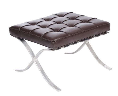 Jest to zaprojektowany w 1929 roku podnóżek, który powstał na zamówienie, i stanął w niemieckim pawilonie na wystawie w Barcelonie.,Charakterystycznie powyginana w kształt litery "X" chromowana podstawa oraz pikowana w kwadraty skóra naturalna to najbardziej charakterystyczne cechy tego podnóżka. Uzupełnieniem tego produktu jest fotel Barcelona i Barcelona stolik.,Podnóżek wykonany całkowicie ze skóry naturalnej.,