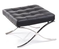 Jest to zaprojektowany w 1929 roku podnóżek, który powstał na zamówienie, i stanął w niemieckim pawilonie na wystawie w Barcelonie.,Charakterystycznie powyginana w kształt litery "X" chromowana podstawa oraz pikowana w kwadraty skóra naturalna to najbardziej charakterystyczne cechy tego podnóżka. Uzupełnieniem tego produktu jest fotel Barcelona i Barcelona stolik.,Podnóżek wykonany całkowicie ze skóry naturalnej.,