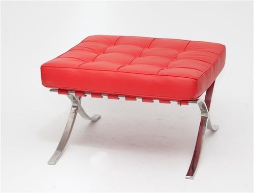 Jest to zaprojektowany w 1929 roku podnóżek, który powstał na zamówienie, i stanął w niemieckim pawilonie na wystawie w Barcelonie.,Charakterystycznie powyginana w kształt litery "X" chromowana podstawa oraz pikowana w kwadraty skóra naturalna to najbardziej charakterystyczne cechy tego podnóżka. Uzupełnieniem tego produktu jest fotel Barcelona i Barcelona stolik.,Podnóżek wykonany całkowicie ze skóry naturalnej.,
