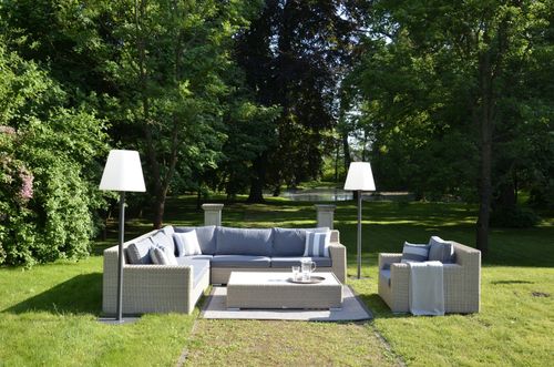 Ogrodowa kolekcja Cloud w szaro-białym kolorze to ekskluzywna propozycja mebli modułowych wykonanych z ekorattanu i tkaniny sunproof. Siedziska i poduszki są dobrane kolorystycznie do designu plecionki, dzięki czemu kolekcja Cloud jest niezwykle spójna. Kolekcja składa się z elementów modułowych, które można ze sobą zestawiać, komponując wyjątkowe aranżacje, dostosowane do indywidualnych potrzeb. Klasyczna seria ogrodowych mebli została zaprojektowana w trosce o komfortowy wypoczynek na tarasie, czy w ogrodzie.