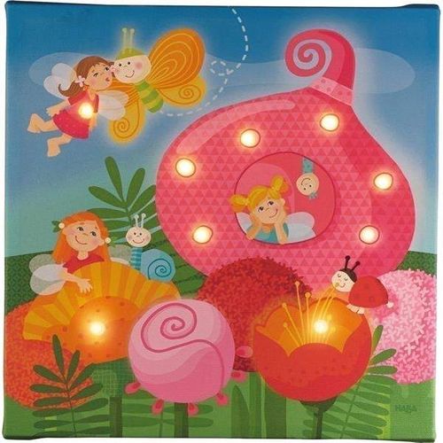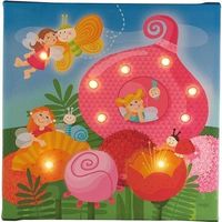 Sny wróżki, to kolorowy obrazek który będzie ozdobą każdego pokoiku. Wykonany jest z bawełny naciągniętej na drewnianą ramkę, wewnątrz znajdują się małe energooszczędne lampki LED zasilane 3 bateriami 1,5 V-AA. Dzięki dyskretnie ukrytemu przełącznikowi lampki można zapalać lub gasić. Najlepsze efekty osiąga się w pomieszczeniu zaciemnionym.