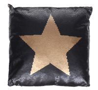 Czarna poduszka Art. Deco o wymiarach 45x45cm. Poduszka w całości pokryta czarnymi cekinami, wyróżnia się złotą gwiazdą na środku. Nowoczesna i niezwykle oryginalna.