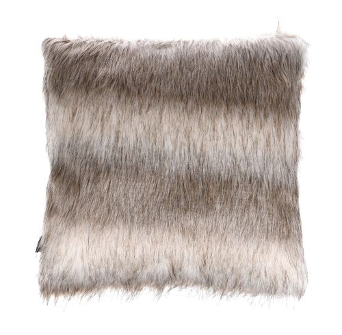 Brązowo-biała poduszka ze sztucznego futra Lynx o wymiarach 45x45cm. Wykonana ze sztucznego futra z długim włosiem w brązowo-białym kolorze, jest bardzo miękka i miła w dotyku. Zastosowanie futra wysokiej jakości sprawia, że poduszka się nie odkształca. Poduszka Lynx doda wnętrzu przytulnego i ciepłego klimatu, doskonale współgrając z pledem.