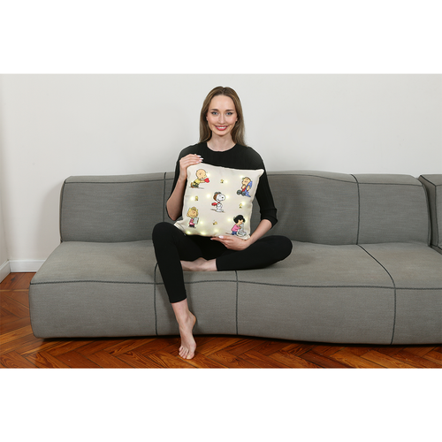 Miękka, przytulna świecąca poduszka, wewnątrz poszewki znajdują się diody LED, dzięki którym poszewka daje światło.