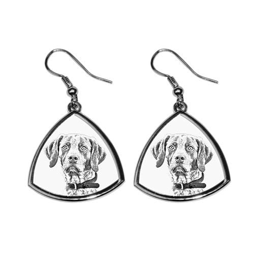 Kolczyki w kształcie zaokrąglonego trójkąta z trwałym nadrukiem Twojej ulubionej rasy psa.