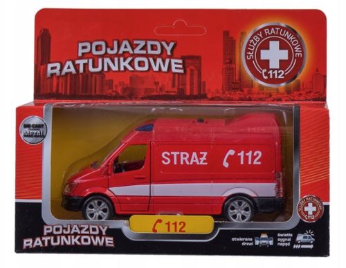 Pojazdy ratunkowe -Bus. Pojazdy wykonane z metalu z plastikowymi elementami wnętrza i podwozia. Posiadają napęd, dźwięk i światło.