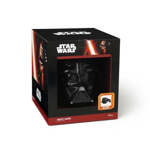 Głowa Dartha Vadera to idealny gadżet dla miłośników Gwiezdnych Wojen, którzy szukają pojemnika do schowania swoich skarbów. Po odkręceniu górnej pokrywy pojemnika pojawia się przestrzeń do schowania drobych akcesoriów szkolnych, zabawek, kosmetyków. Głowa jest zrobiona z trwałego plastiku, zatem jest łatwa w utrzymaniu.