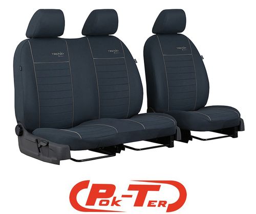 Najnowszy model pokrowców TREND line wykonany jest z dzianiny tapicerskiej w kolorze ciemny grafit – nowością w ofercie jest tłoczona faktura materiału zastosowanego na pas środkowy.
