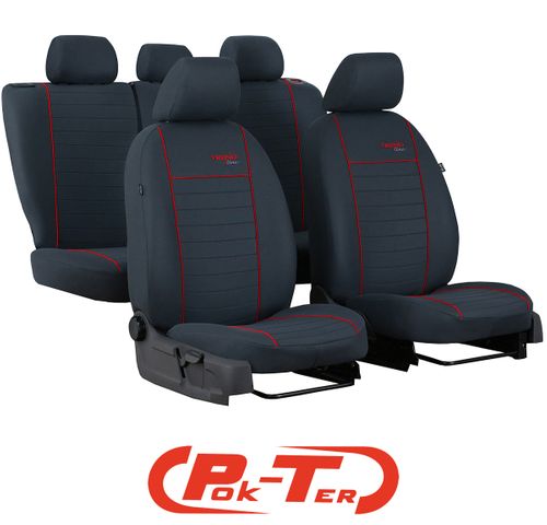 Najnowszy model pokrowców TREND line wykonany jest z dzianiny tapicerskiej w kolorze ciemny grafit – nowością w ofercie jest tłoczona faktura materiału zastosowanego na pas środkowy.