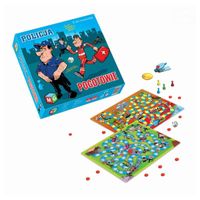 Zestaw zawiera 2 gry planszowe: POLICJA to gra planszowa, w której każdy z graczy-policjantów wyrusza w pościg na wieść o ucieczce grupy więźniów z miejscowego więzienia. Po drodze policjanci mogą napotkać sytuacje, które będą również wymagały ich interwencji lub pomocy. Policjant, który w czasie swojego pościgu schwyta najwięcej zbiegów i będzie pomocny w innych napotkanych sytuacjach zostane zwycięzcą. POGOTOWIE - w tej grze każdy z graczy jest członkiem jednego z czterech zespołów pogotowia ratunkowego. Ratownicy wyjeżdzają ze szpitala i starają sie dotrzeć do każdego zgłoszonego wypadku. Gracz-ratownik, który będzie udzielał najczęściej pomocy poszkodowanym zostanie zwycięzcą. Zestaw zawiera : Planszę - 1 szt, pionki - 4szt, żetony - 24 szt, kostka do gry - 1 szt, katapulta- 1 szt, miseczka- 1 szt oraz instrukcje.