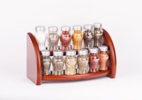 Półka z przyprawami polskiej firmy GALD wykonana z drewna bukowego trwale pokrytego potrójną warstwą lakieru ekologicznego. Pojemniki szklane z plastikowymi nakrętkami dostępne w wersji matowej lub z połyskiem.