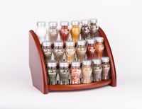 Półka z przyprawami polskiej firmy GALD wykonana z drewna bukowego trwale pokrytego potrójną warstwą lakieru ekologicznego. Pojemniki szklane z plastikowymi nakrętkami dostępne w wersji matowej lub z połyskiem.
