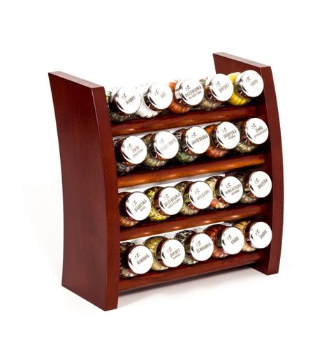 Półka z przyprawami polskiej firmy GALD wykonana z drewna bukowego trwale pokrytego potrójną warstwą lakieru ekologicznego. Pojemniki szklane z plastikowymi nakrętkami dostępne w wersji matowej lub z połyskiem.