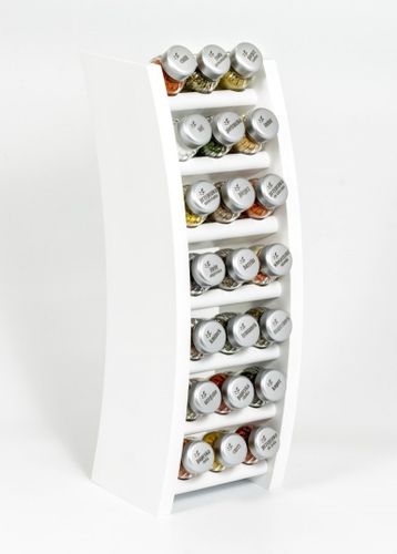 Półka z przyprawami polskiej firmy GALD wykonana z drewna bukowego trwale pokrytego potrójną warstwą lakieru ekologicznego. Pojemniki szklane z plastikowymi nakrętkami dostępne w wersji matowej lub z połyskiem.