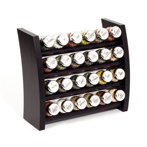 Półka z przyprawami polskiej firmy GALD wykonana z drewna bukowego trwale pokrytego potrójną warstwą lakieru ekologicznego. Pojemniki szklane z plastikowymi nakrętkami dostępne w wersji matowej lub z połyskiem.