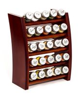 Półka z przyprawami polskiej firmy GALD wykonana z drewna bukowego trwale pokrytego potrójną warstwą lakieru ekologicznego. Pojemniki szklane z plastikowymi nakrętkami dostępne w wersji matowej lub z połyskiem.