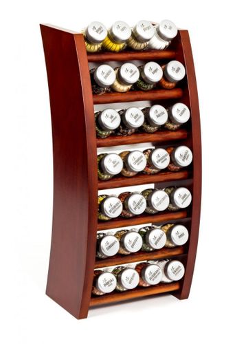 Półka z przyprawami polskiej firmy GALD wykonana z drewna bukowego trwale pokrytego potrójną warstwą lakieru ekologicznego. Pojemniki szklane z plastikowymi nakrętkami dostępne w wersji matowej lub z połyskiem.