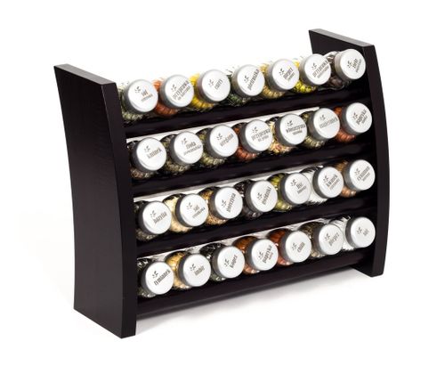 Półka z przyprawami polskiej firmy GALD wykonana z drewna bukowego trwale pokrytego potrójną warstwą lakieru ekologicznego. Pojemniki szklane z plastikowymi nakrętkami dostępne w wersji matowej lub z połyskiem.