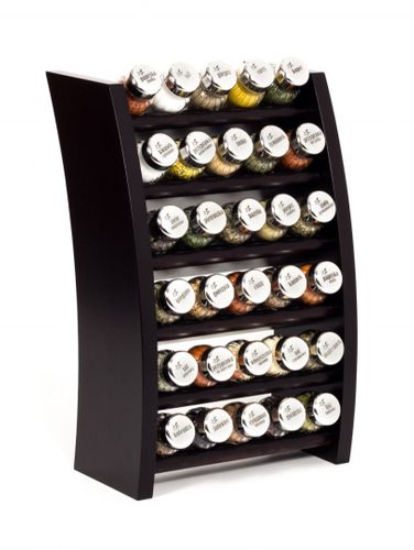 Półka z przyprawami polskiej firmy GALD wykonana z drewna bukowego trwale pokrytego potrójną warstwą lakieru ekologicznego. Pojemniki szklane z plastikowymi nakrętkami dostępne w wersji matowej lub z połyskiem.