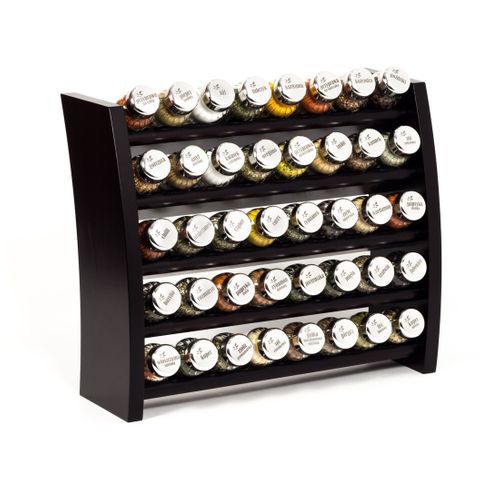 Półka z przyprawami polskiej firmy GALD wykonana z drewna bukowego trwale pokrytego potrójną warstwą lakieru ekologicznego. Pojemniki szklane z plastikowymi nakrętkami dostępne w wersji matowej lub z połyskiem.