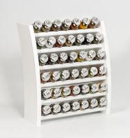 Półka z przyprawami polskiej firmy GALD wykonana z drewna bukowego trwale pokrytego potrójną warstwą lakieru ekologicznego. Pojemniki szklane z plastikowymi nakrętkami dostępne w wersji matowej lub z połyskiem.