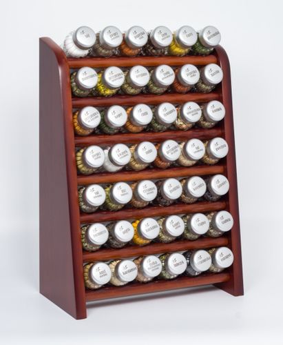 Półka z przyprawami polskiej firmy GALD wykonana z drewna bukowego trwale pokrytego potrójną warstwą lakieru ekologicznego. Pojemniki szklane z plastikowymi nakrętkami dostępne w wersji matowej lub z połyskiem.