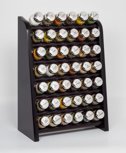 Półka z przyprawami polskiej firmy GALD wykonana z drewna bukowego trwale pokrytego potrójną warstwą lakieru ekologicznego. Pojemniki szklane z plastikowymi nakrętkami dostępne w wersji matowej lub z połyskiem.