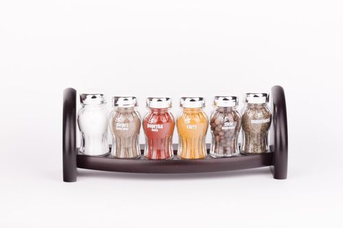 Półka z przyprawami polskiej firmy GALD wykonana z drewna bukowego trwale pokrytego potrójną warstwą lakieru ekologicznego. Pojemniki szklane z plastikowymi nakrętkami dostępne w wersji matowej lub z połyskiem.