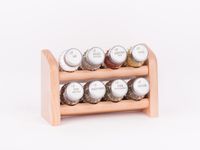 Półka z przyprawami polskiej firmy GALD wykonana z drewna bukowego trwale pokrytego potrójną warstwą lakieru ekologicznego. Pojemniki szklane z plastikowymi nakrętkami dostępne w wersji matowej lub z połyskiem.