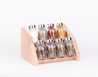 Półka z przyprawami polskiej firmy GALD wykonana z drewna bukowego trwale pokrytego potrójną warstwą lakieru ekologicznego. Pojemniki szklane z plastikowymi nakrętkami dostępne w wersji matowej lub z połyskiem.