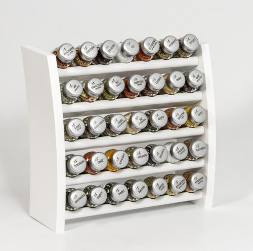 Półka z przyprawami polskiej firmy GALD wykonana z drewna bukowego trwale pokrytego potrójną warstwą lakieru ekologicznego. Pojemniki szklane z plastikowymi nakrętkami dostępne w wersji matowej lub z połyskiem.