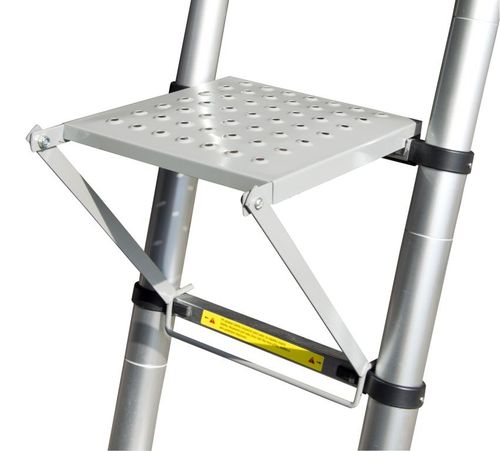 Doskonała pomoc przy długotrwałych pracach na drabinie, poszerza pole oparcia dla stóp podczas pracy. Praktyczna półka na narzędzia lub wygodny podest.