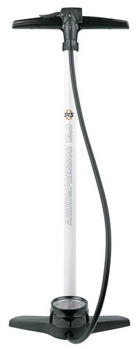 Pompka stacjonarna (serwisowa) z wysokociśnieniowym wężykiem zakończonym końcówką Multi Valve Head do wszystkich typów wentyli, uszczelnioną i posiadającą zaciskową dźwignię. Nadaje się do pompowania zarówno rowerów, jak też motocykli i samochodów. Stalowy cylinder oraz podstawa z dużymi stopkami zapewniają stabilne ustawienie pompki. Pompka posiada manometr, który pozwala dokładnie kontrolować ciśnienie.