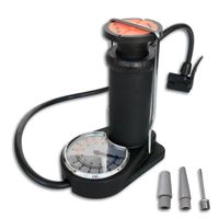 Ta plastikowa mini pompka nożna jest wyposażona w manometr do dokładnego pompowania opon do pożądanego ciśnienia. Z uniwersalną podwójną pompą do zaworów Dunlop, Presta i Schrader. W zestawie poręczna torba do przechowywania i zestaw adapterów.