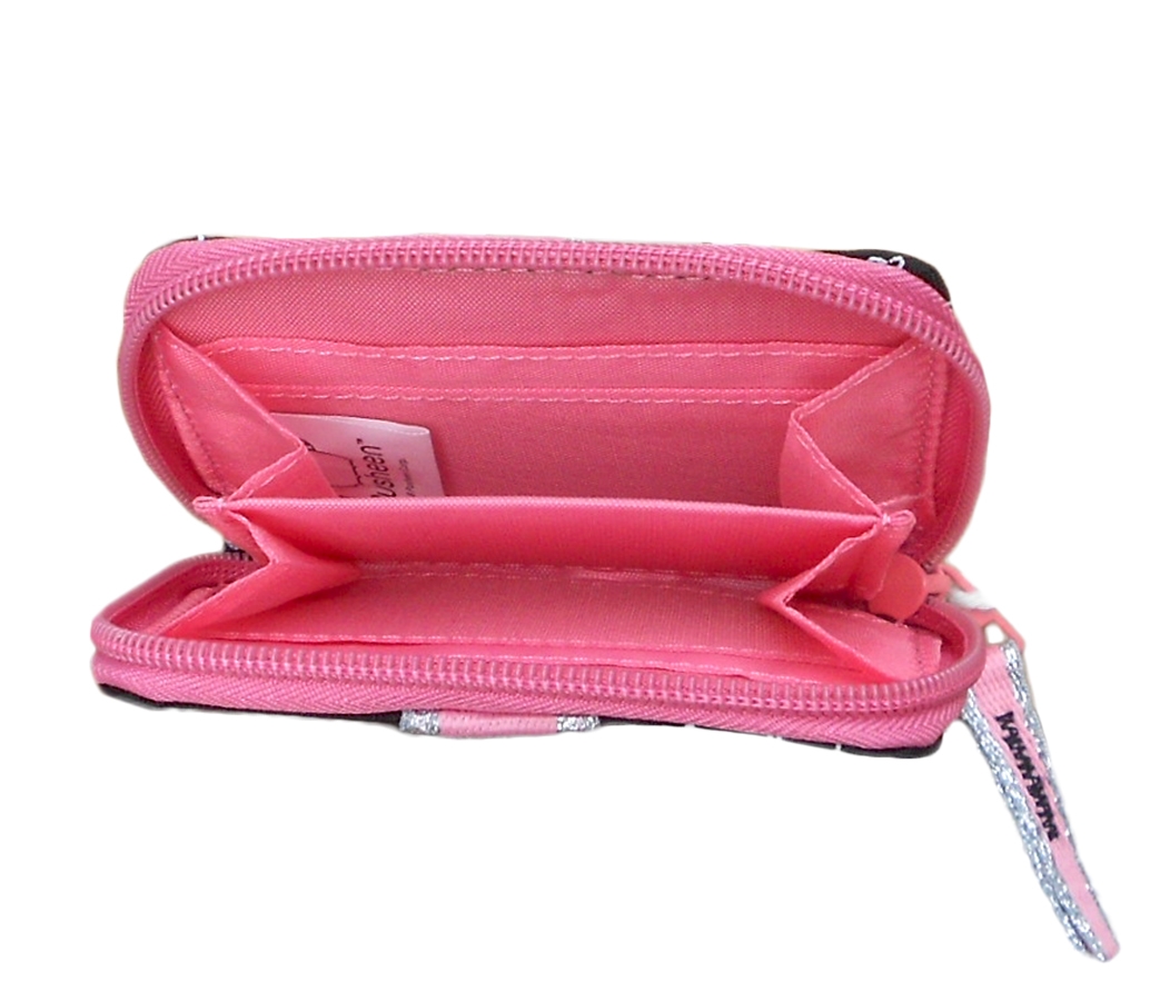 Miaauw ... Pusheen jest ulubionym kotem każdego! Ten uroczy, grubiutki kot porwał serca wszystkich w Internecie! Kolekcja Pusheen Celebrity wykonana jest z czarnego poliestru z czarnym nadrukiem Pusheen oraz różowymi i srebrnymi detalami z brokatu. Portfel zamykany na zamek błyskawiczny, ma kilka małych kieszeni po wewnętrznej stronie.