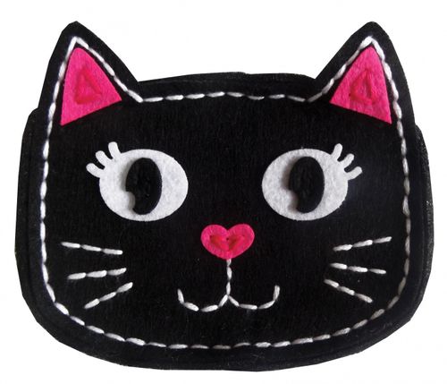 Zestaw do samodzielnego wykonania portfelika w kształcie głowy kotka.