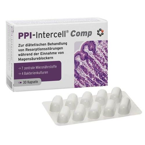 Wahania poziomu pH środowiska żołądka mogą mieć wpływ na przyswajalność składników odżywczych z pożywienia. Preparat PPI Intercell® Comp zawiera kompleks witamin, minerałów oraz kultur bakterii w odpowiedniej formie oraz stężeniu i jest suplementem uzupełniającym codzienną dietę w te substancje niezależnie od ilości wytwarzanego przez organizm kwasu żołądkowego.