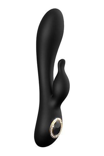 Wibrator Alexia z kolekcji Prestige firmy Dream Toys to czarny wibrator ze stylowym guzikiem w kształcie klejnotu ze złotym pierścieniem, dość dużą, elastyczną główką i elastycznym stymulatorem łechtaczki. Dwa mocne silniki oferują 7 wzorów wibracji i 3 prędkości. Wibrator Alexia można ładować za pomocą dołączonego magnetycznego kabla USB. Wykonany jest z miękkiego silikonu i ABS, wodoodporny i bezpieczny dla ciała, nie zawiera ftalanów ani lateksu. Obsługę można wykonać za pomocą jednego przycisku dotykowego u podstawy wibratora, który po aktywacji świeci niebieskim światłem LED.